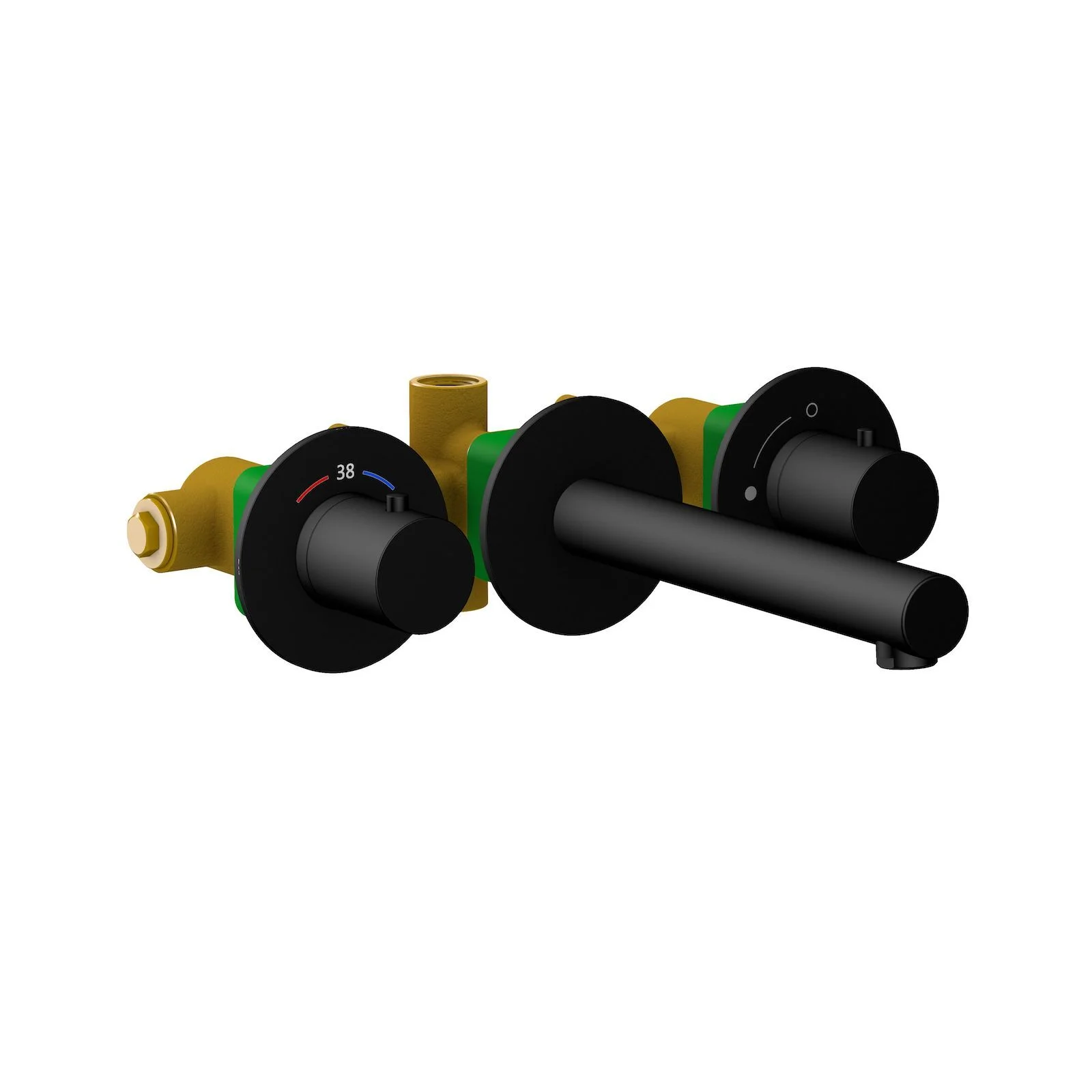 Смеситель для раковины настенный с термостатом Timo Saona 2382/03SM (со скрытой частью) чёрный матовый