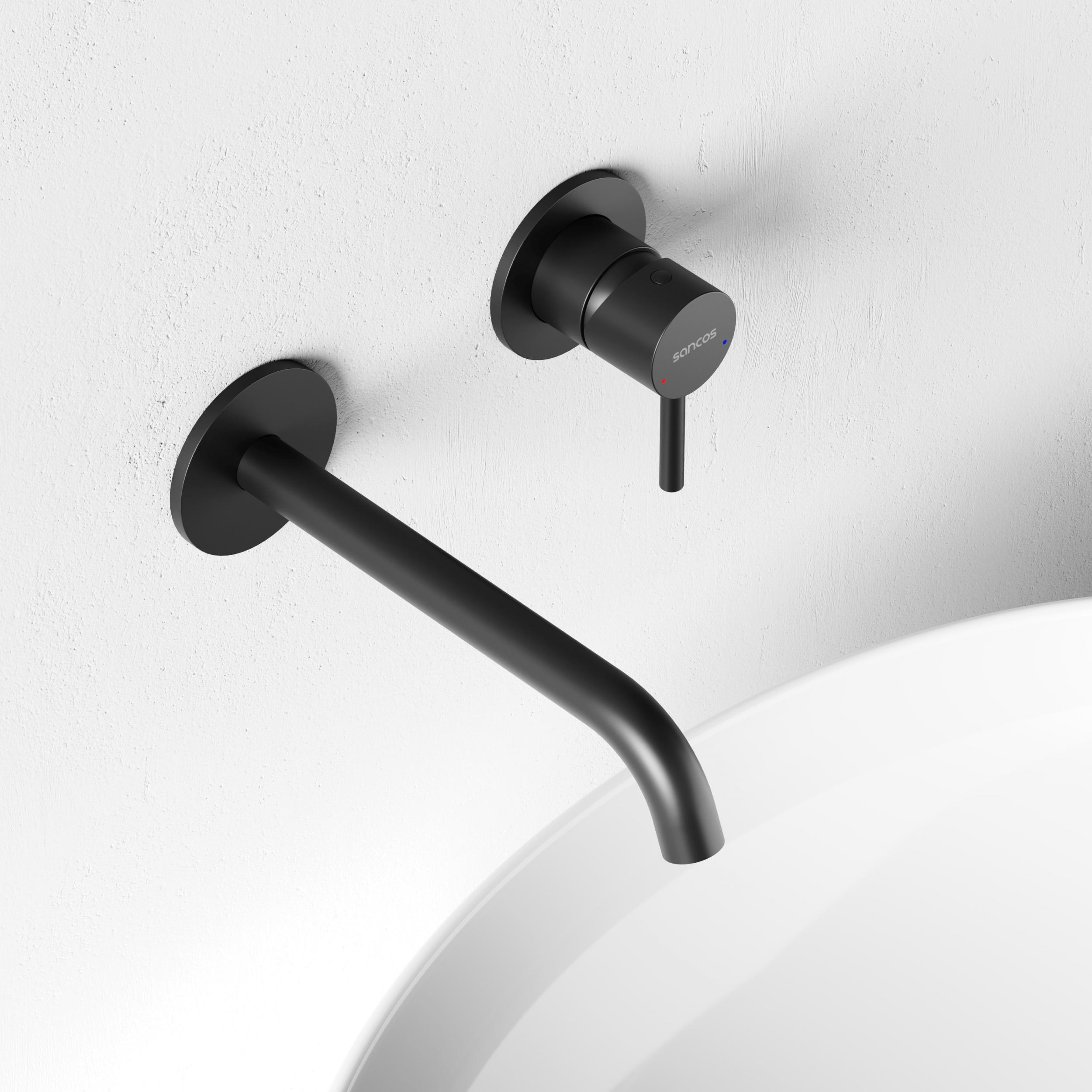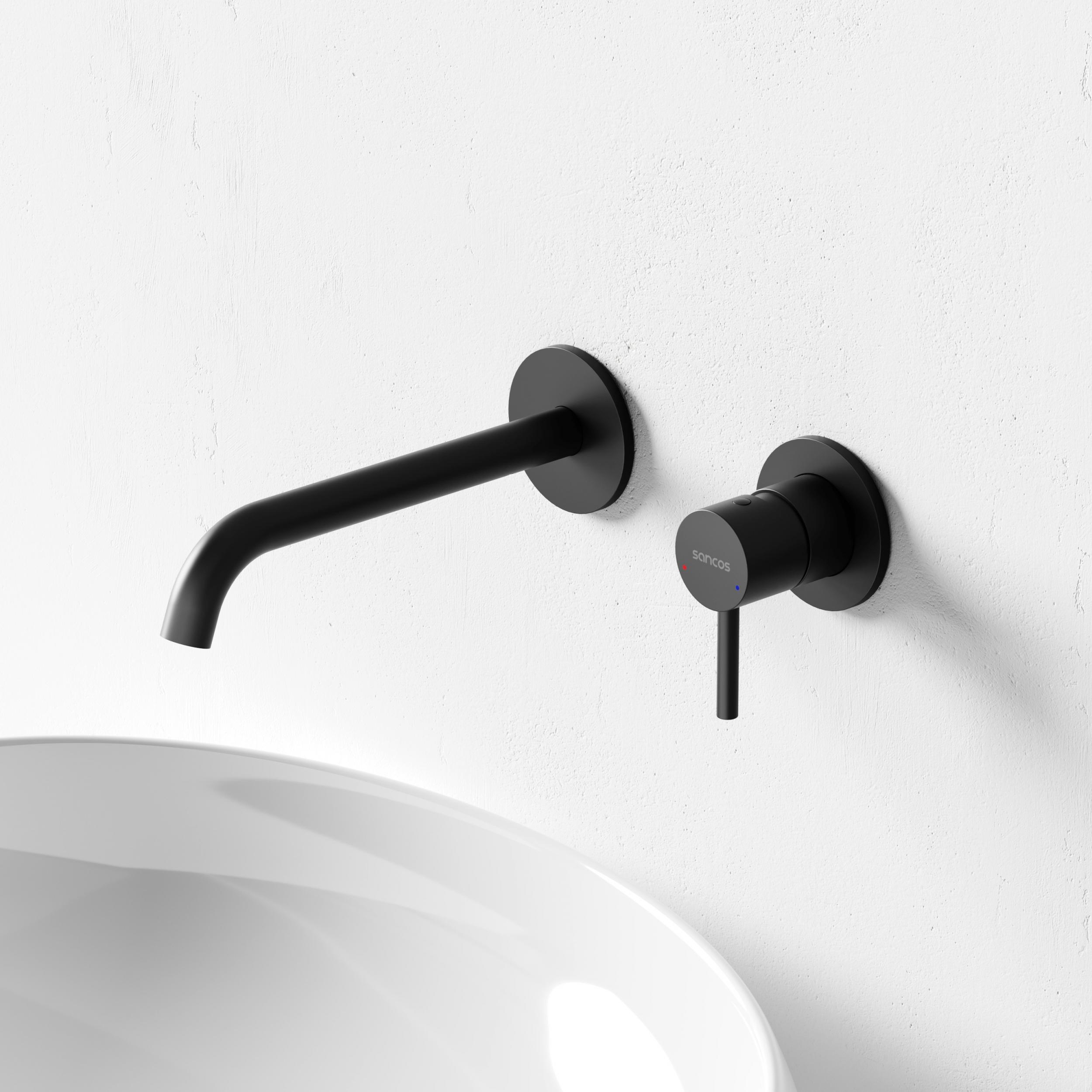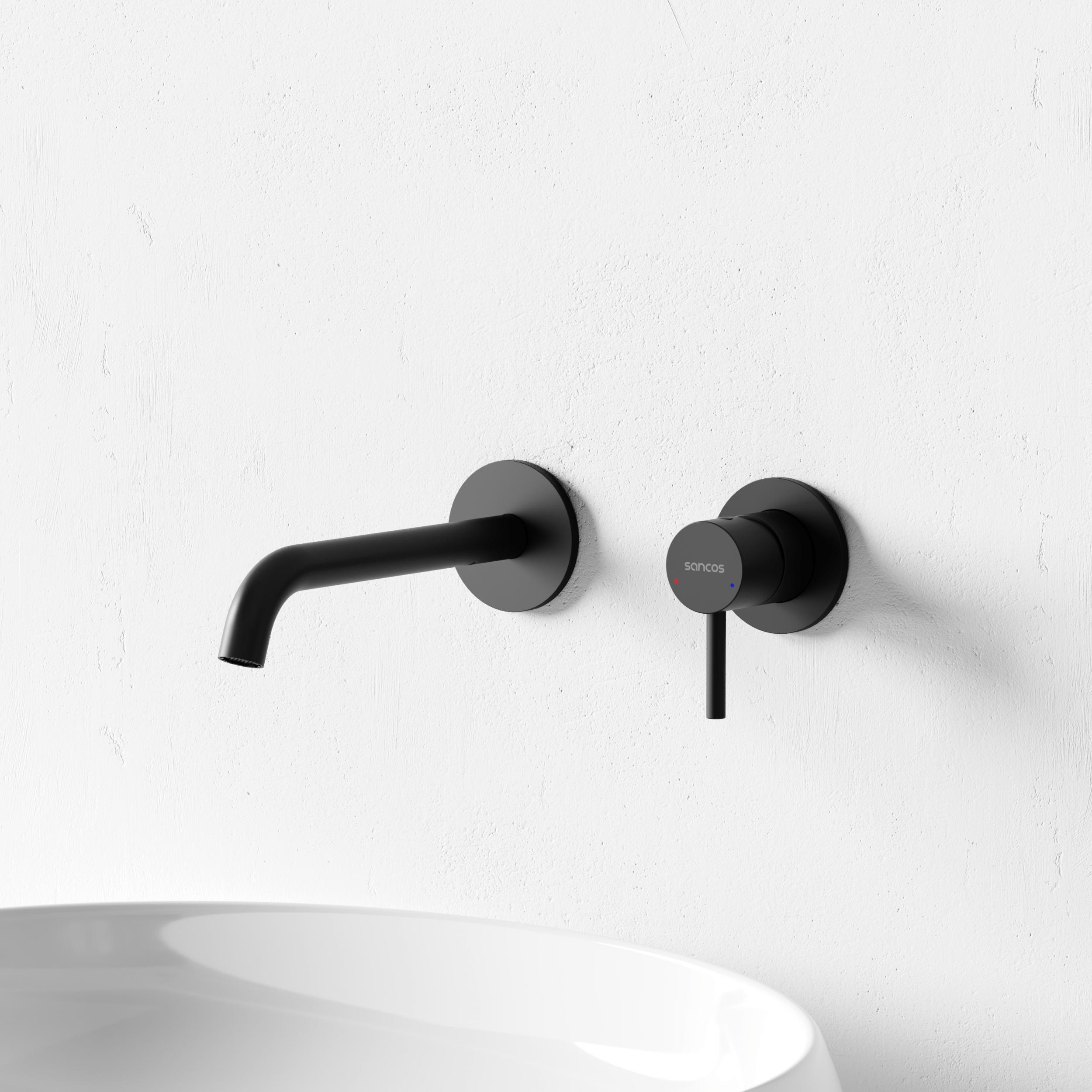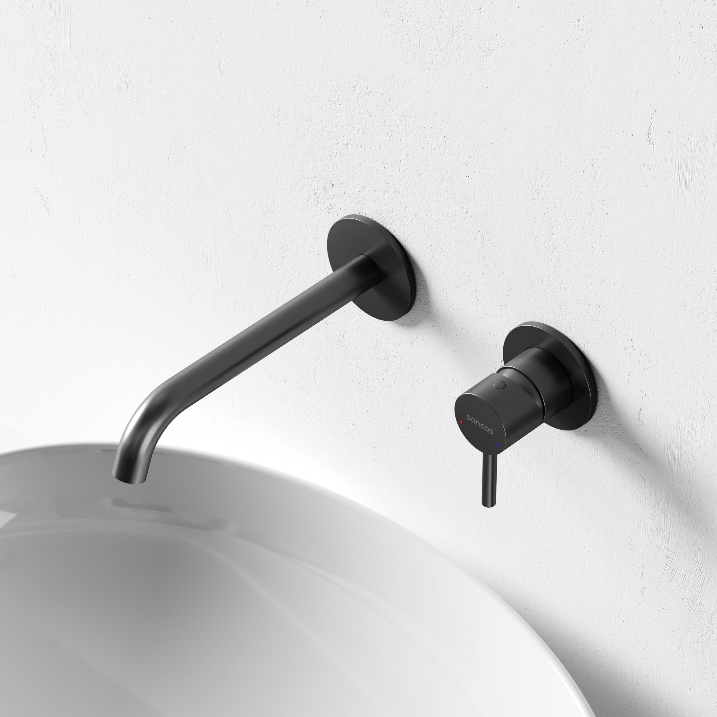 Смеситель для раковины настенный Sancos Etna SC9004MB, чёрный матовый (со скрытой частью)