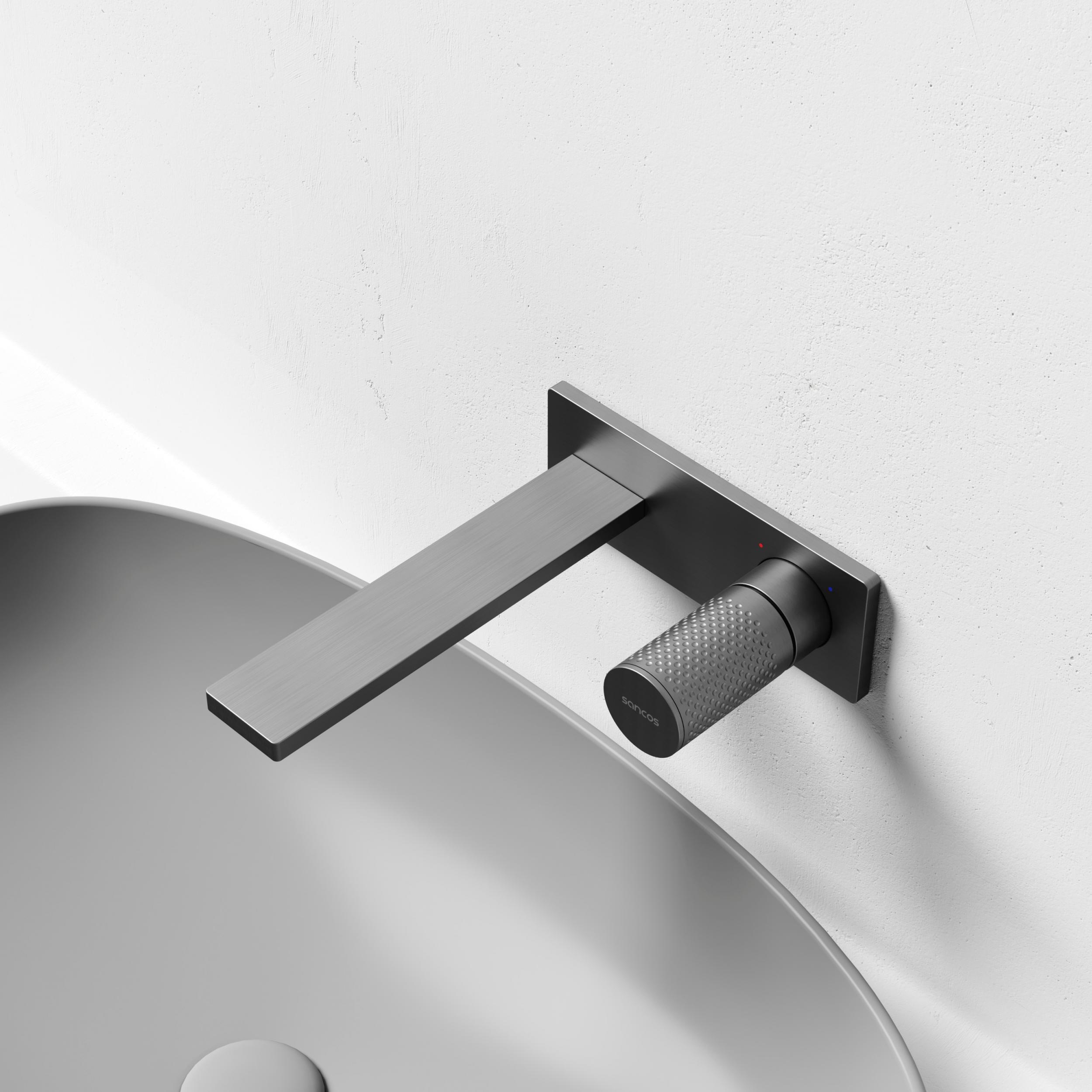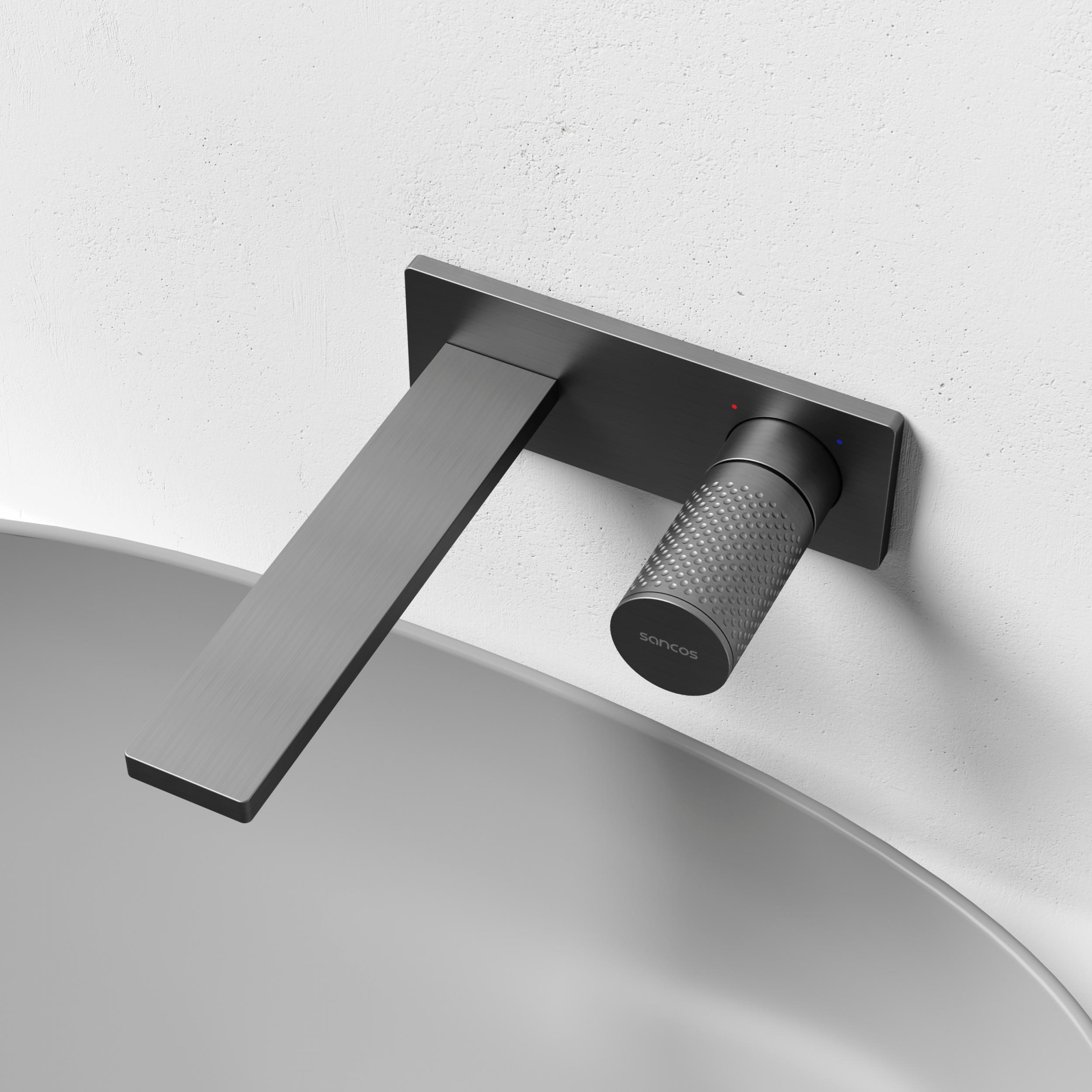 Смеситель для раковины настенный Sancos Nexus SC9013GG, вороненая сталь (со скрытой частью)