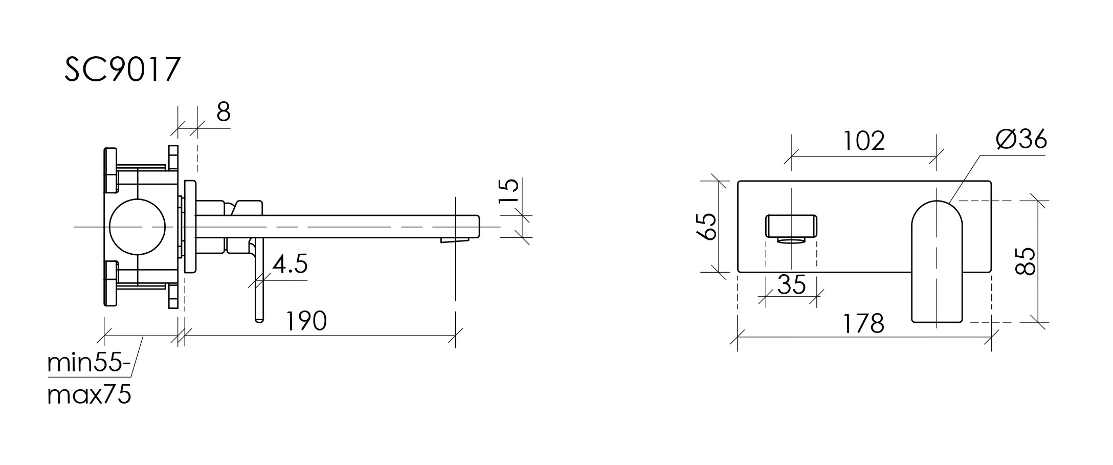 Характеристики смеситель для раковины настенный Sancos (SC9017MB)