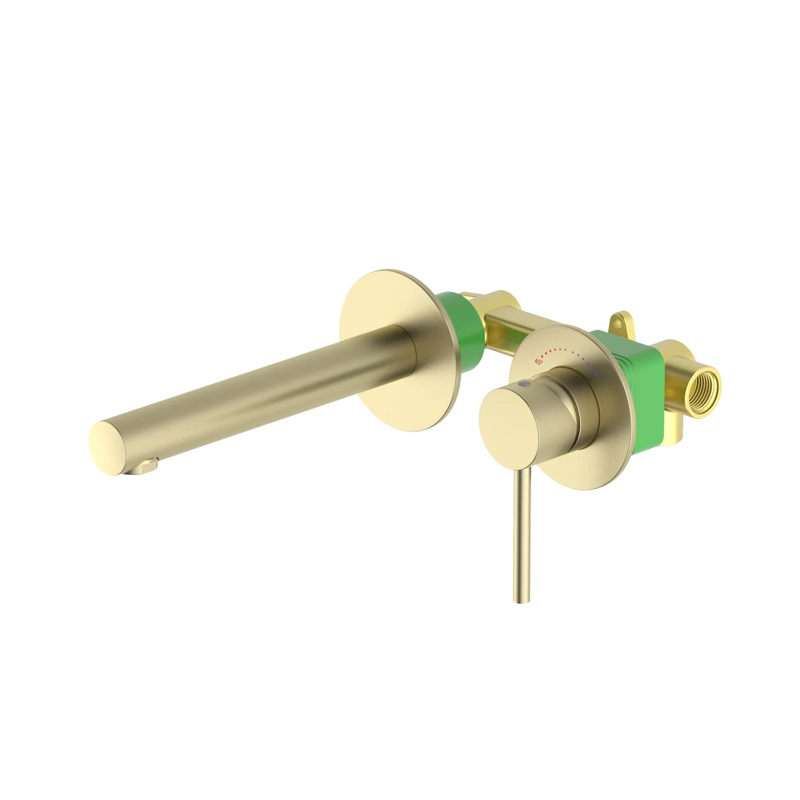 Смеситель для раковины настенный Timo Saona 2391/17SM со скрытой частью в комплекте, материал латунь, цвет золото матовое.