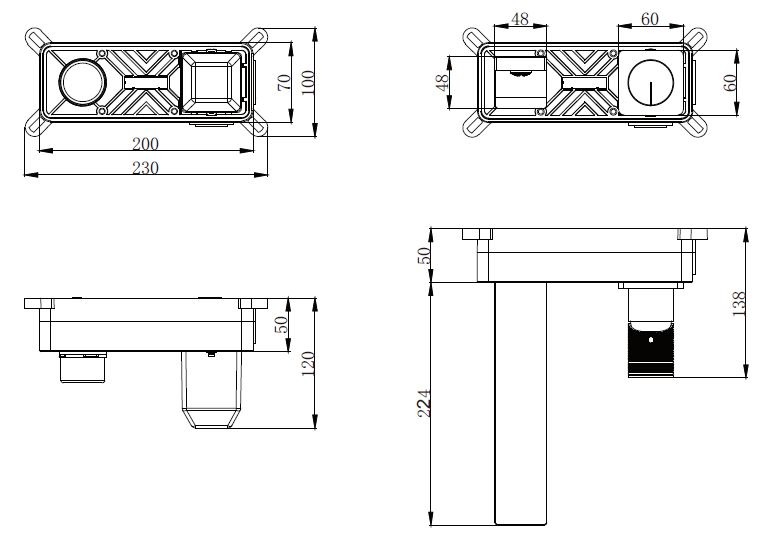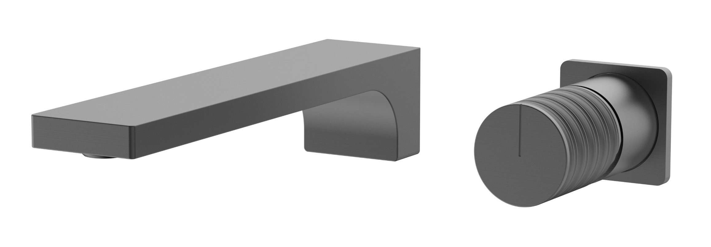 Смеситель для раковины настенный Vincea Domus VBFW-5DM01GM со скрытой частью в комплекте, материал - латунь, цвет - вороненая сталь.