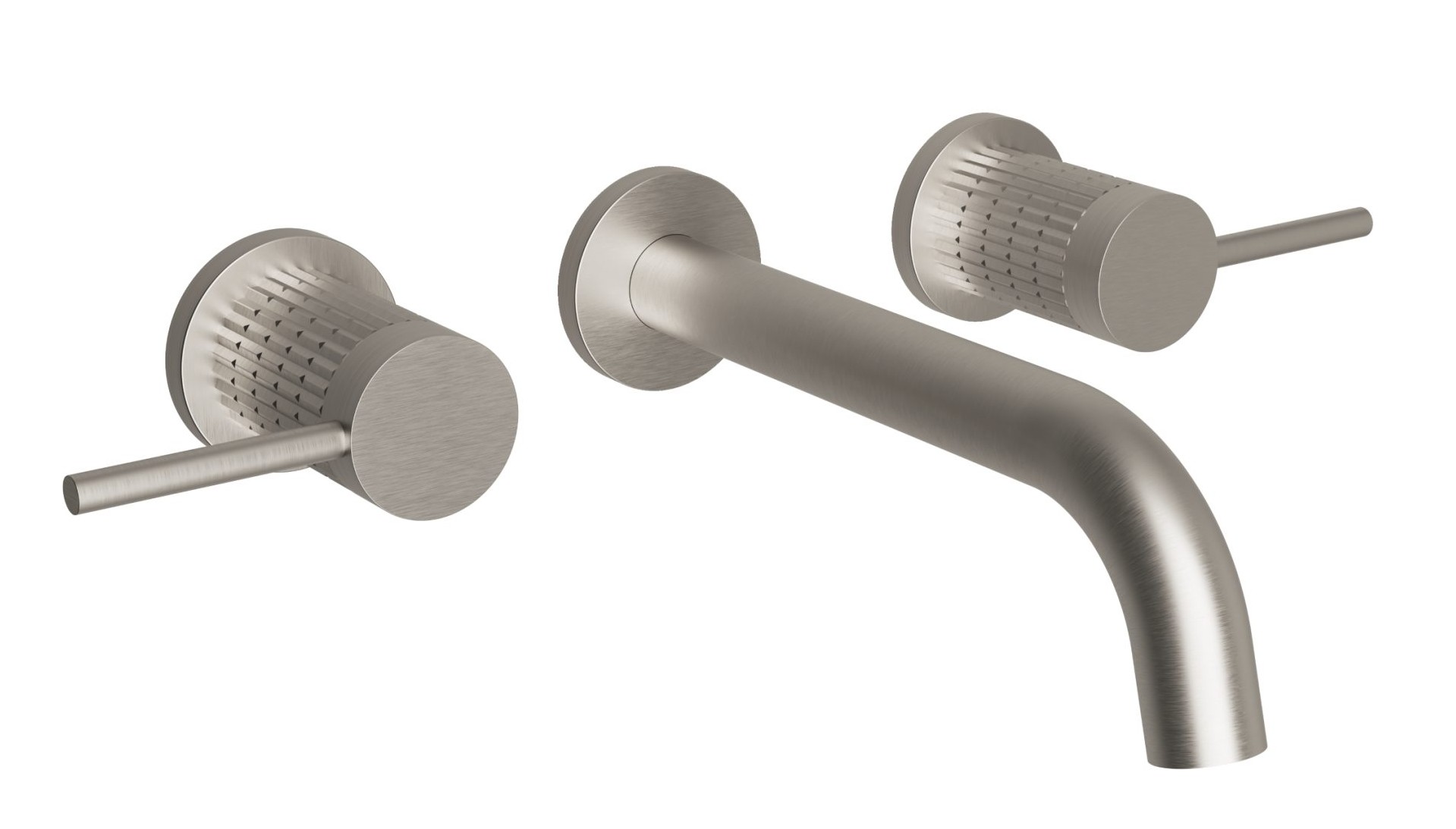 Смеситель для раковины настенный Vincea Groove VBFW-4G1BN со скрытой частью в комплекте, материал - латунь, цвет - брашированный никель.