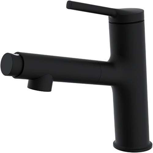Смеситель для раковины Gappo G1052-76 с выдвижным изливом и кнопкой экономии воды, материал - латунь, цвет - черный.