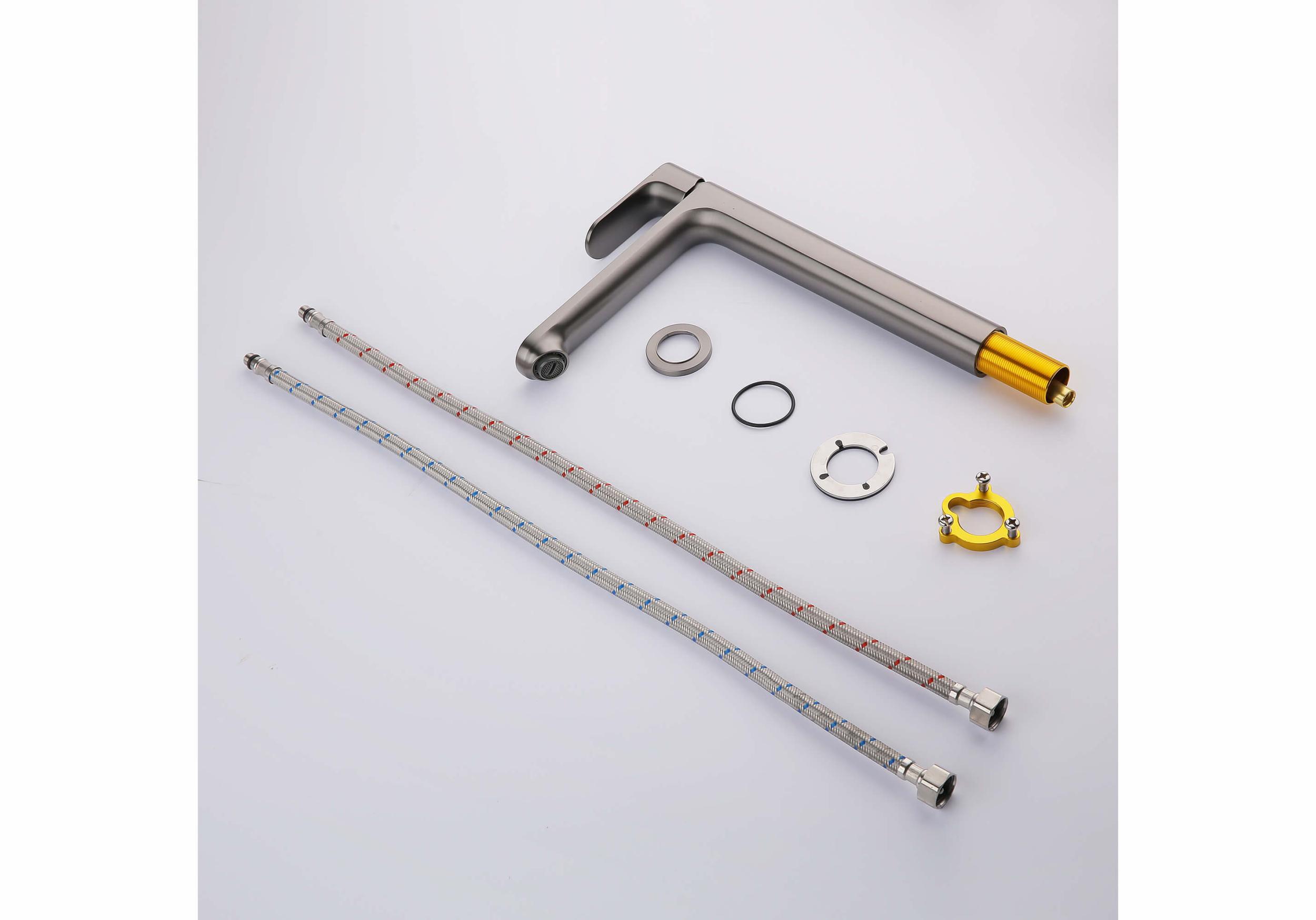 Смеситель для раковины высокий Aquatek Альфа AQ1904BGM, оружейная сталь