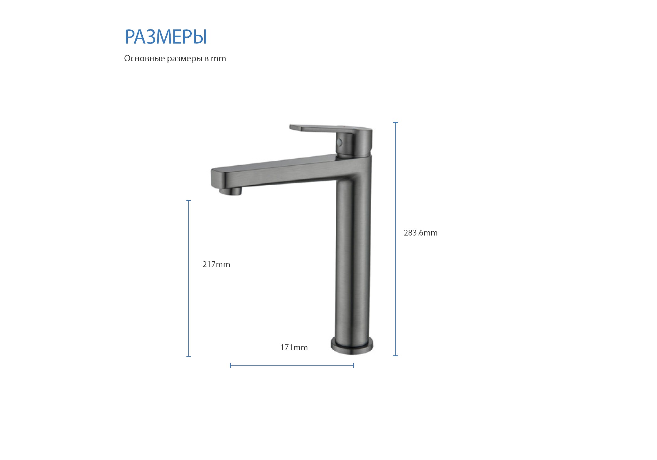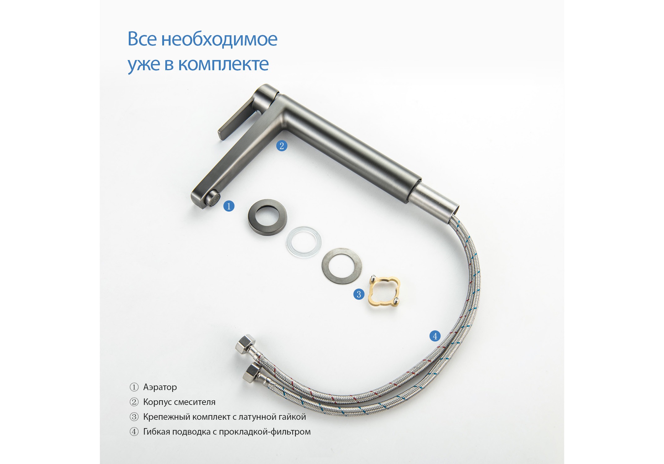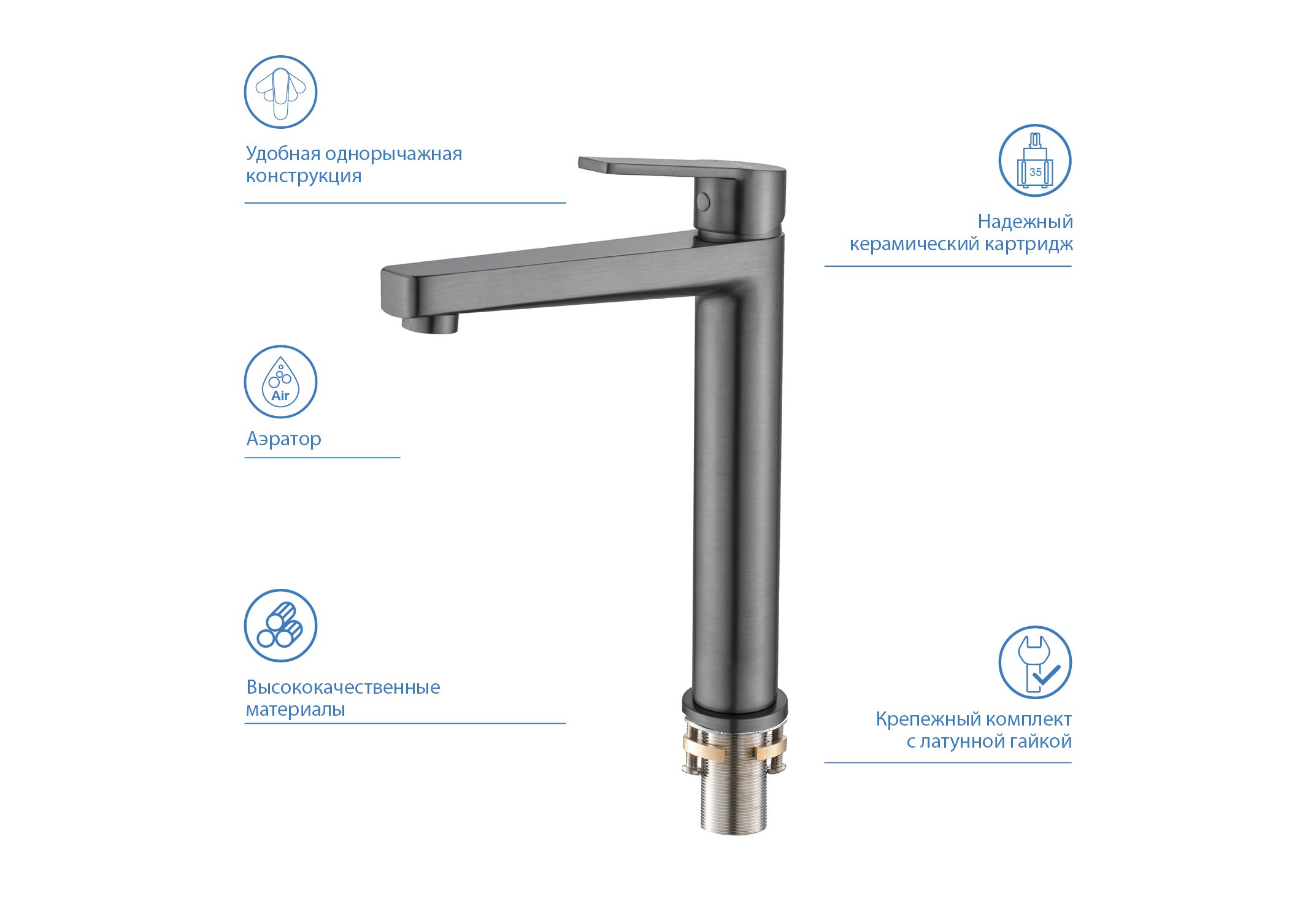 Смеситель для раковины высокий Aquatek Лугано AQ1704BGM, оружейная сталь
