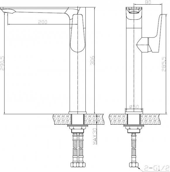 - Оснащение: без донного клапана, аэратор, гибкая подводка