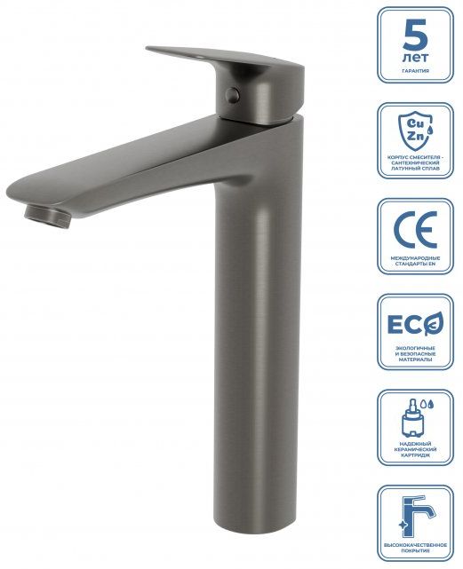 Смеситель для раковины высокий BelBagno DUE-LMC-GM-W0, оружейная сталь