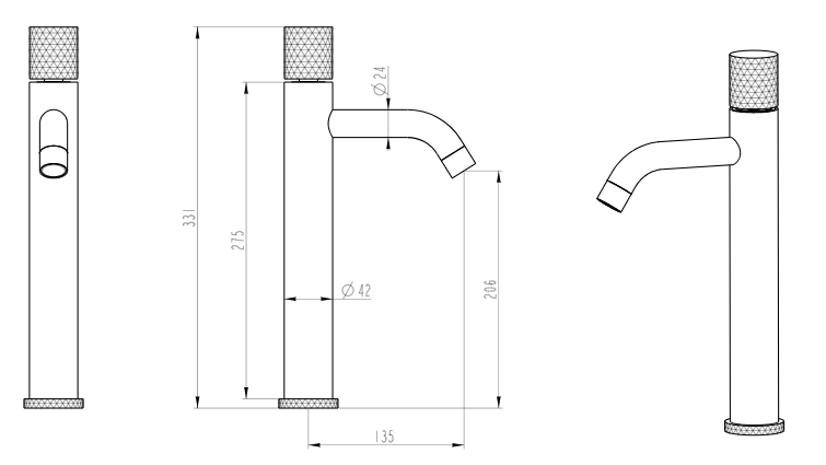 Характеристики смеситель для раковины высокий Boheme (122-GM.2)