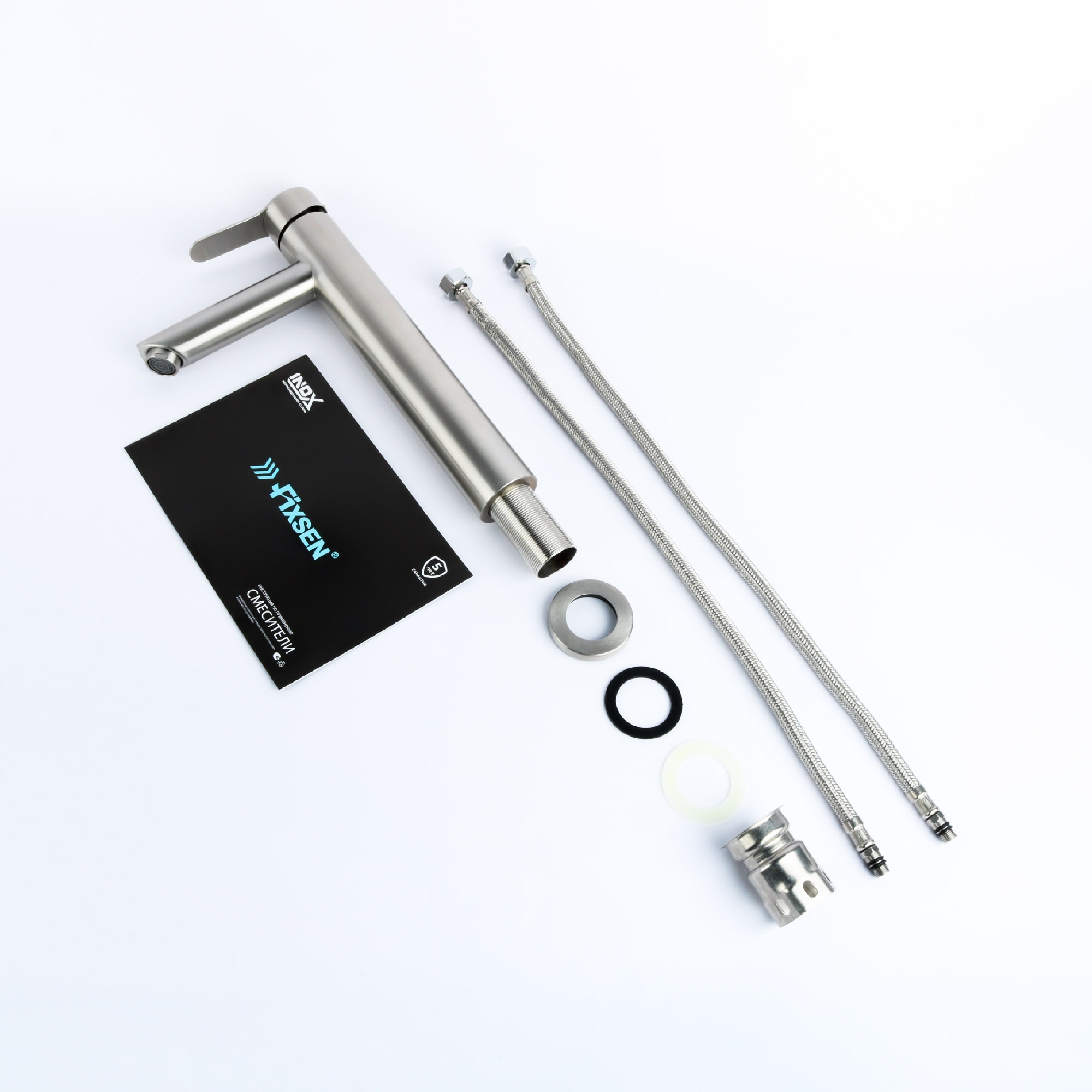 Смеситель для раковины высокий Fixsen NORDIC FX-8809N, материал - нержавеющая сталь, цвет - сатин.