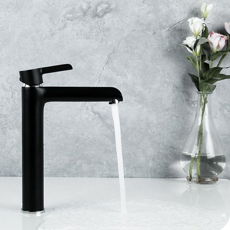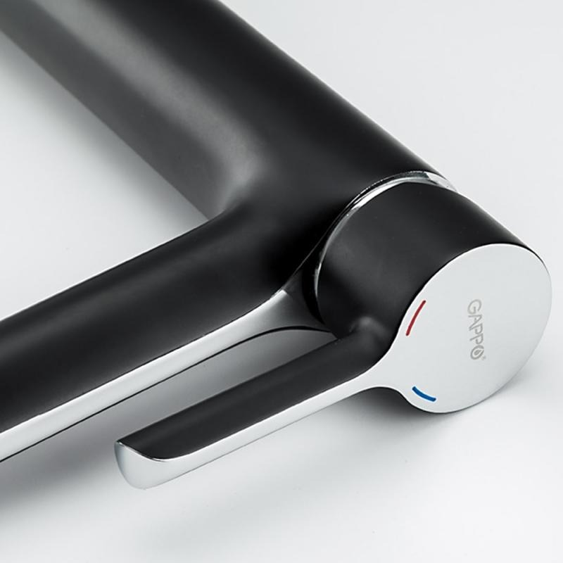 Смеситель для раковины высокий Gappo G1003-16, черный/хром