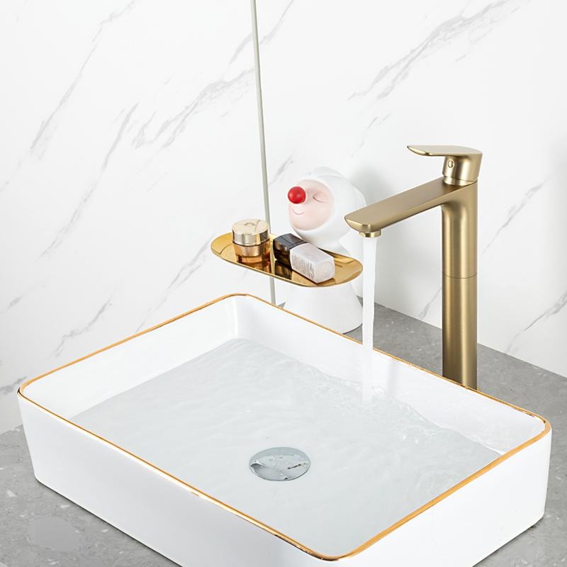 Смеситель для раковины высокий Gappo G48-3 G1048-32, золото сатин