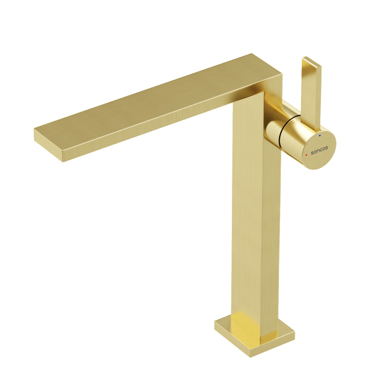 Смеситель для раковины высокий Sancos Linn SC9020BG, брашированное золото