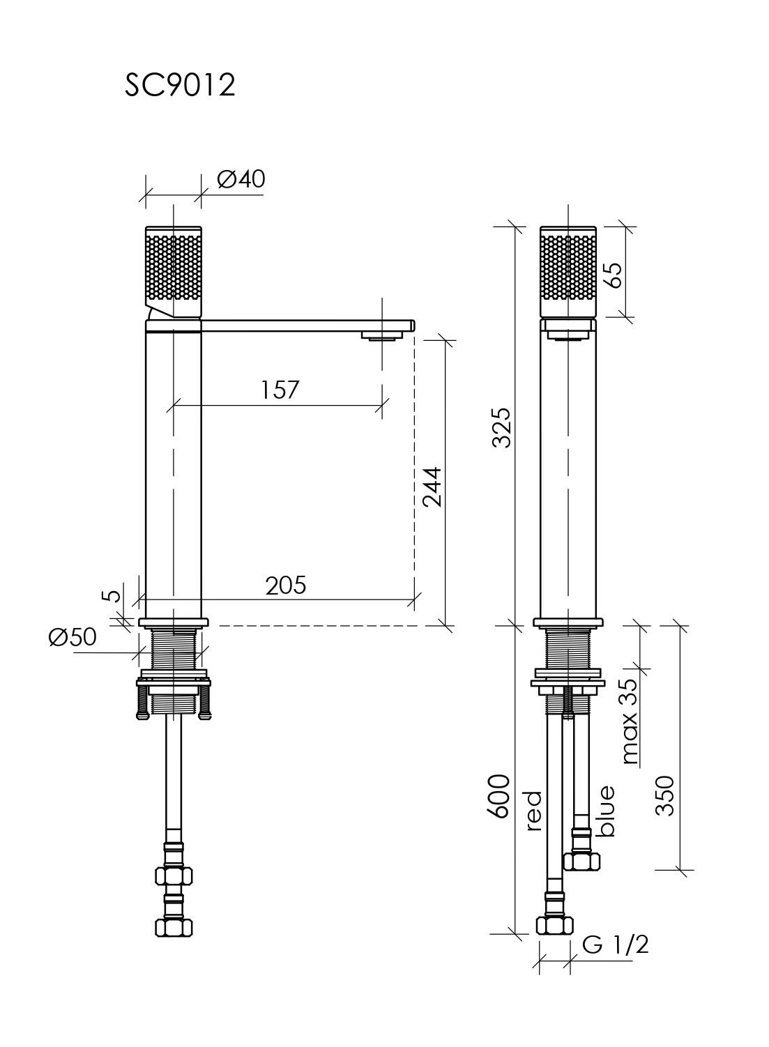 - Смеситель высокий для раковины с рифленой ручкой управления