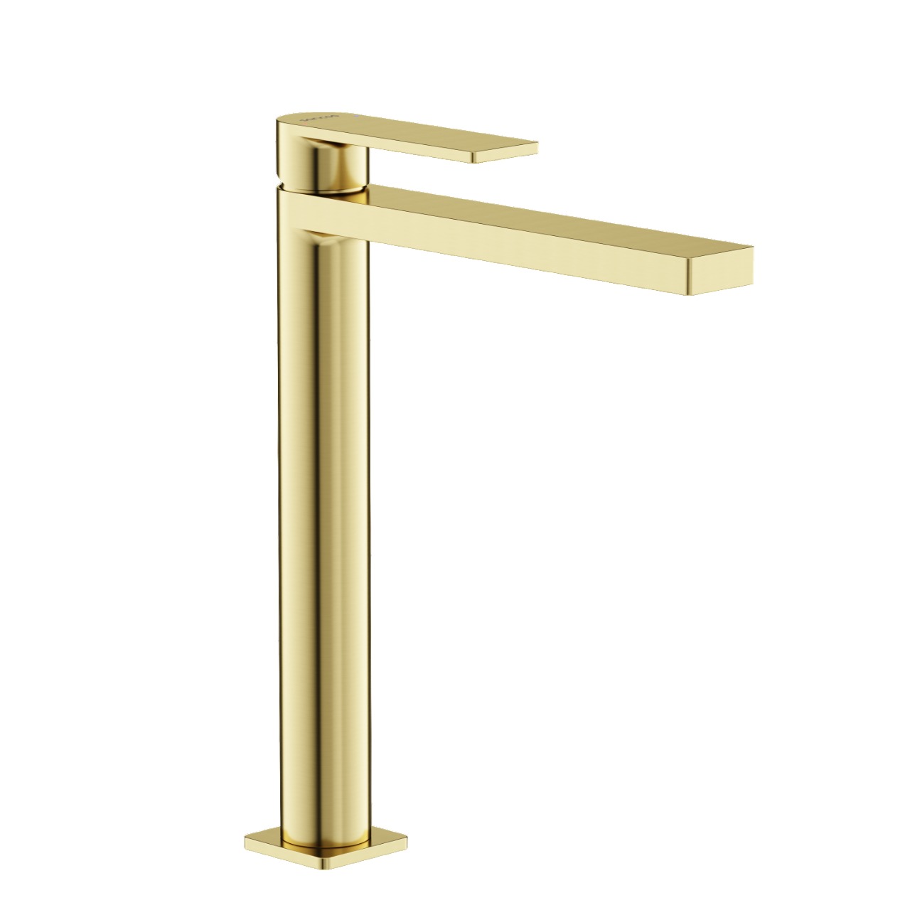 Смеситель для раковины высокий Sancos Studio SC9016BG, материал латунь, цвет брашированное золото.