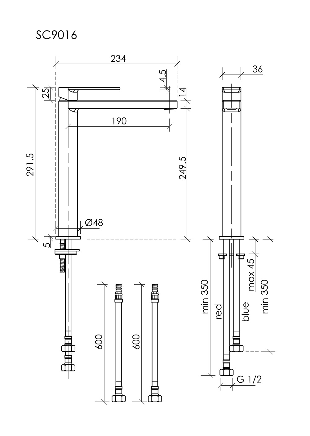 - Гибкая подводка в оплетке из нержавеющей стали, с увеличенной длиной - 600 мм