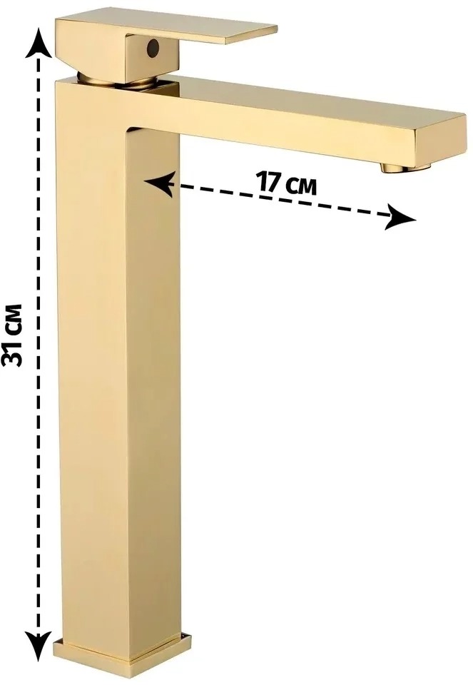 Смеситель для умывальника высокий Grocenberg GB3008GO, материал латунь, цвет - золото.