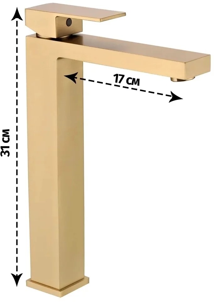 Смеситель для умывальника высокий Grocenberg GB3008MG, материал латунь, цвет - матовое золото.