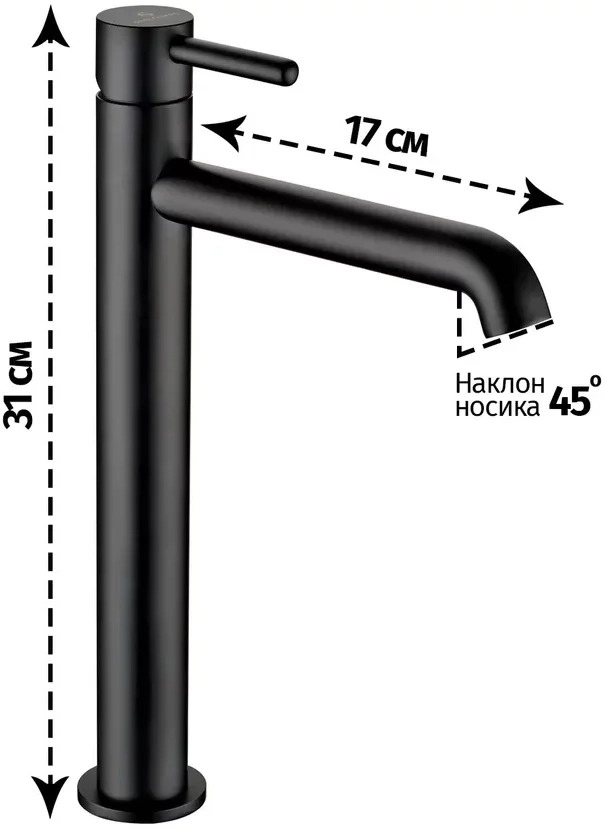 - Длина (вынос) излива - 17 см.