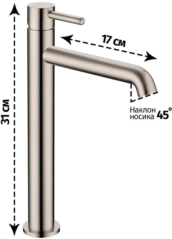 Смеситель для умывальника высокий Grocenberg GB3029NK, материал латунь, цвет - никель.