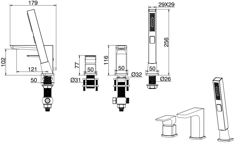 Смеситель для ванны Allen Brau Infinity 5.21008-00 с душевым гарнитуром и внутренней частью, материал латунь, цвет хром.
