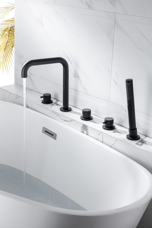 Смеситель для ванны Allen Brau Priority 5.31007-31 с душевым гарнитуром и внутренней частью, материал латунь, цвет чёрный матовый.