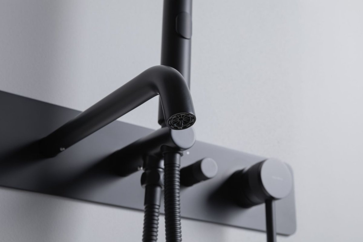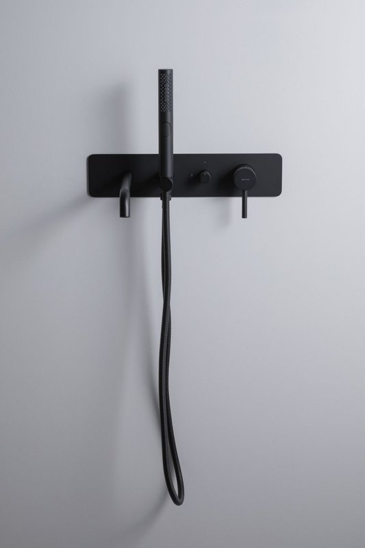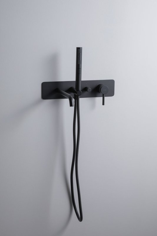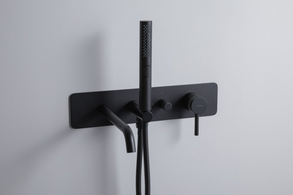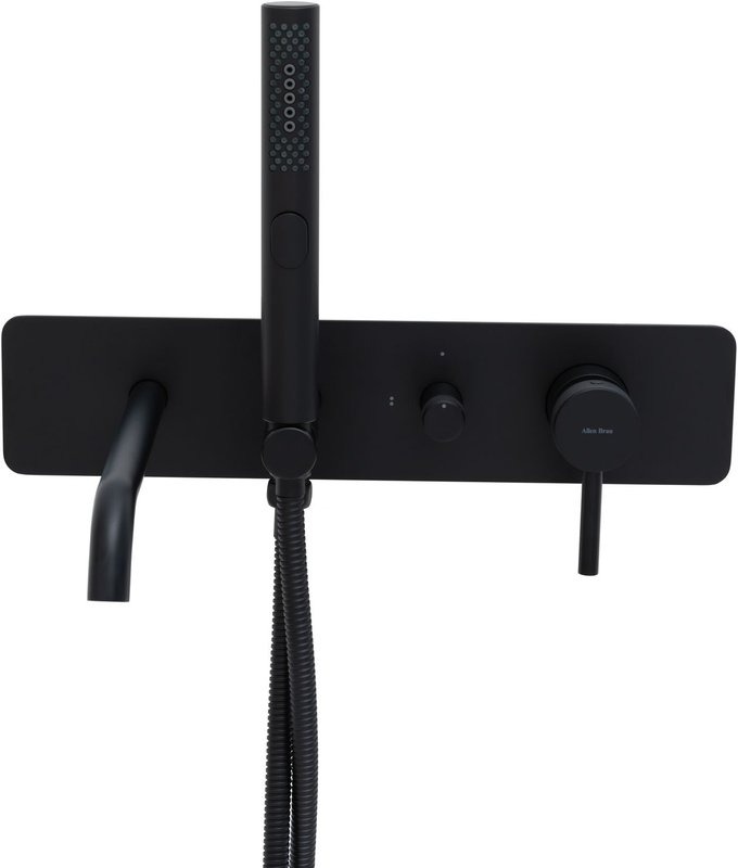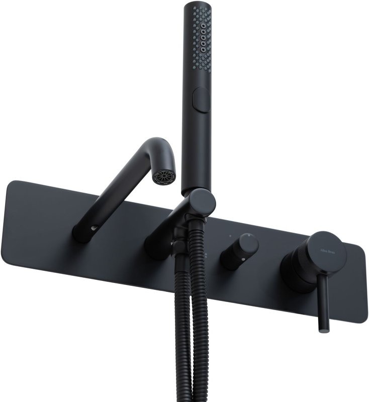 Смеситель для ванны Allen Brau Priority 5.31A05-31 со скрытой частью и душевым гарнитуром в комплекте, материал - латунь, цвет - чёрный матовый.