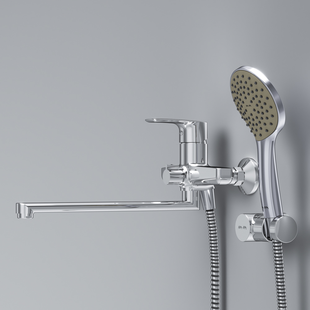 Брутальный и трендовый дизайн: уникальная шестигранная форма выделяется среди однообразных стандартных смесителей в доступном ценовом сегменте. Эксклюзивная разработка: специально спроектированный для АМ.РМ керамический картридж SoftMotion 35 мм обеспечивает оптимальную регулировку температуры а также позволяет выдерживать любые перепады давления. Точная инженерия для Вашего комфорта: благодаря обширной зоне движения ручки управлять температурой воды еще проще. В комплекте душевой набор: стильный ручной душ 120 мм 1 режим настенный держатель с регулировкой угла наклона душевой шланг с защитой от скручивания.