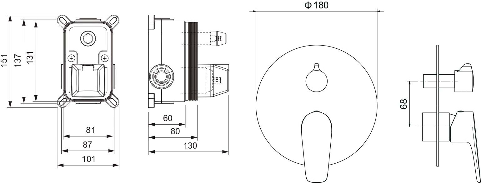 Смеситель для ванны Aquatek Бетта AQ1146CR (со скрытой частью)