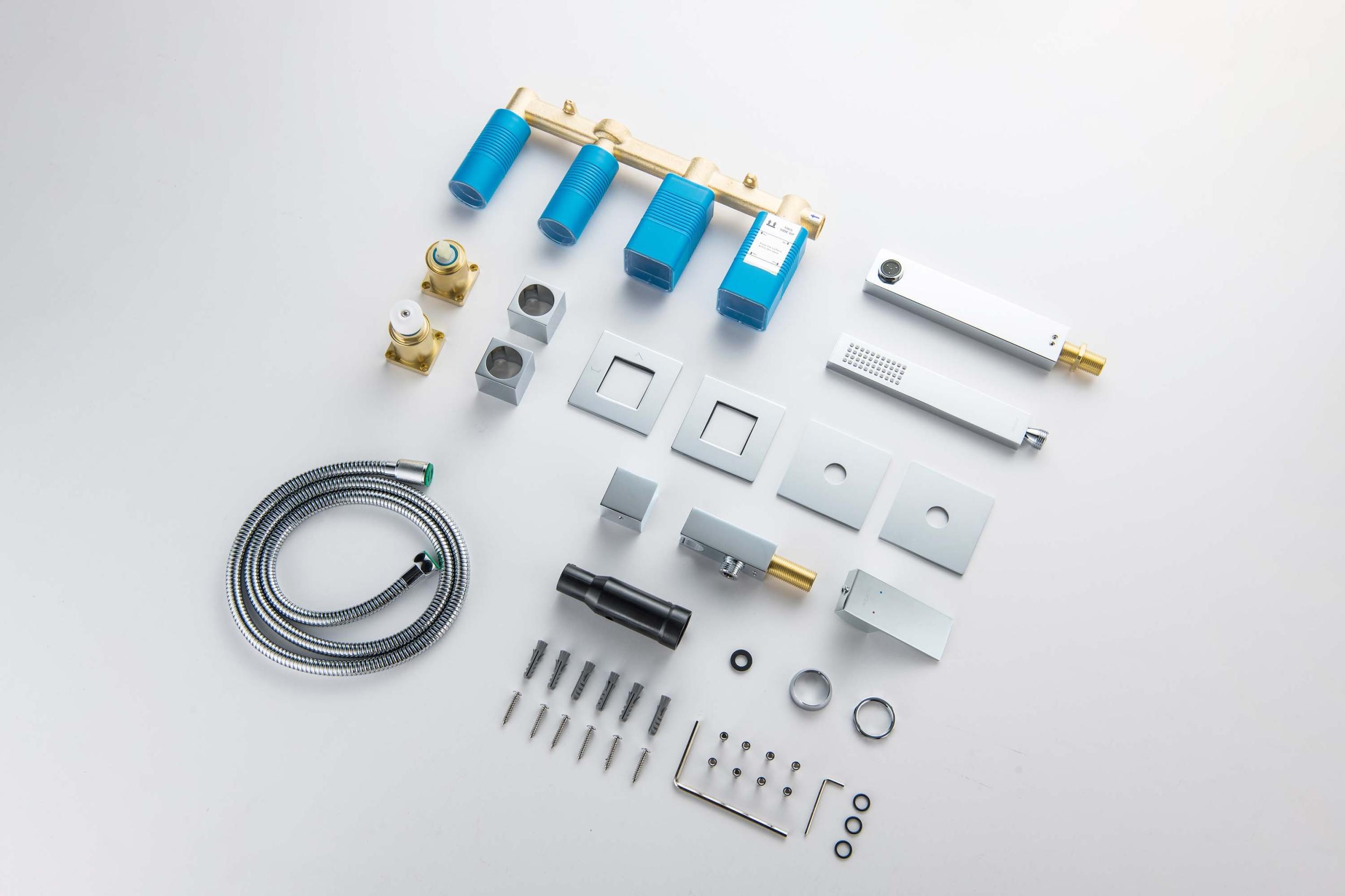 - Смеситель из латуни с установочной коробкой на 2 потребителя (внешняя и скрытая часть)