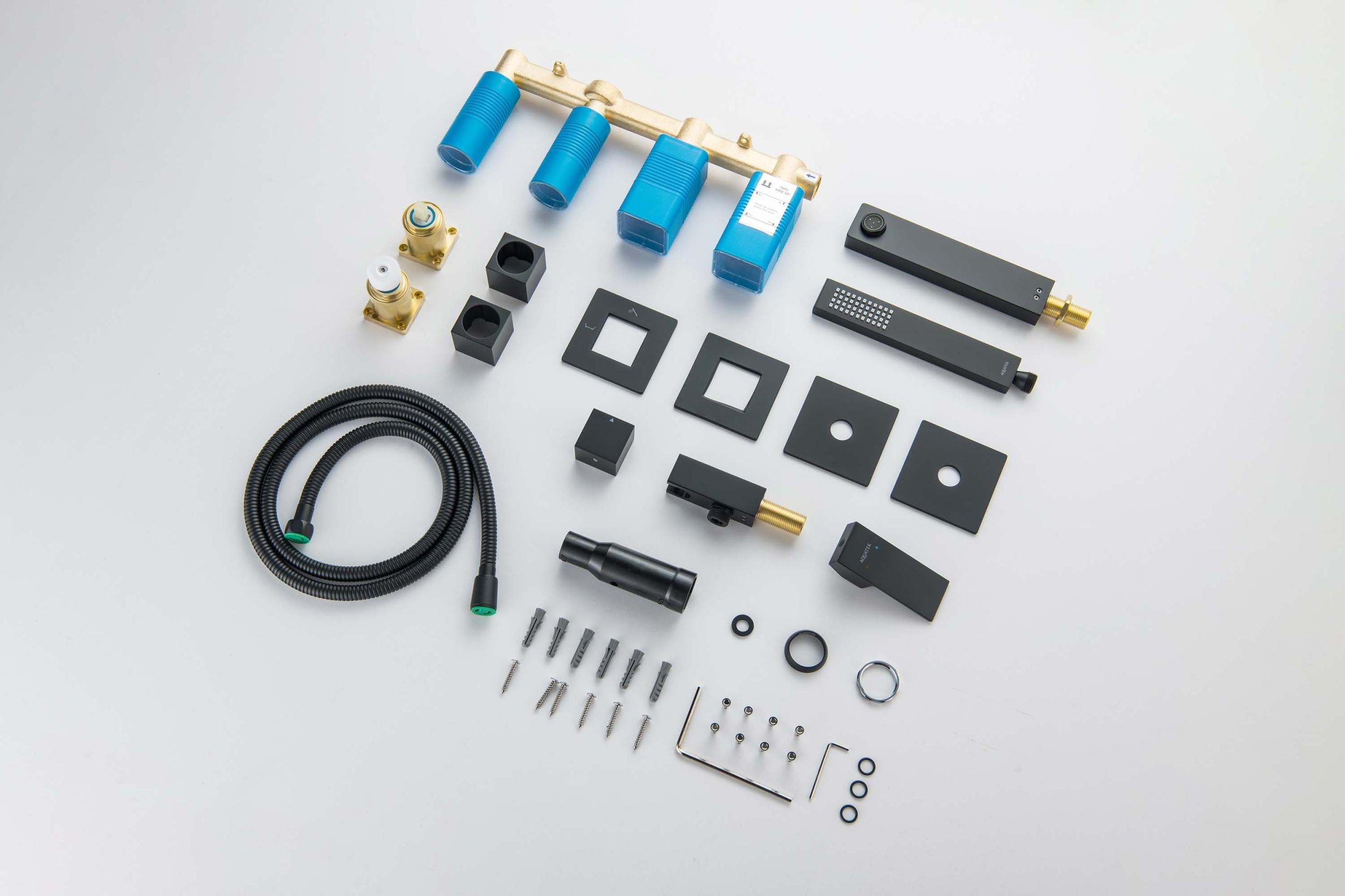 - Смеситель из латуни с установочной коробкой на 2 потребителя (внешняя и скрытая часть)