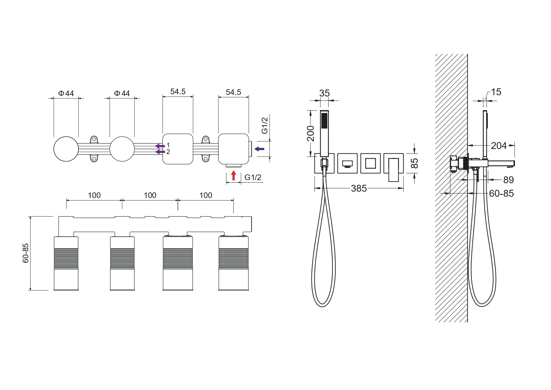 - Монтаж: встраиваемый в стену