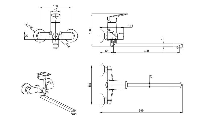 - благодаря длинному изливу, возможность использоватьодновременно для ванны и раковины