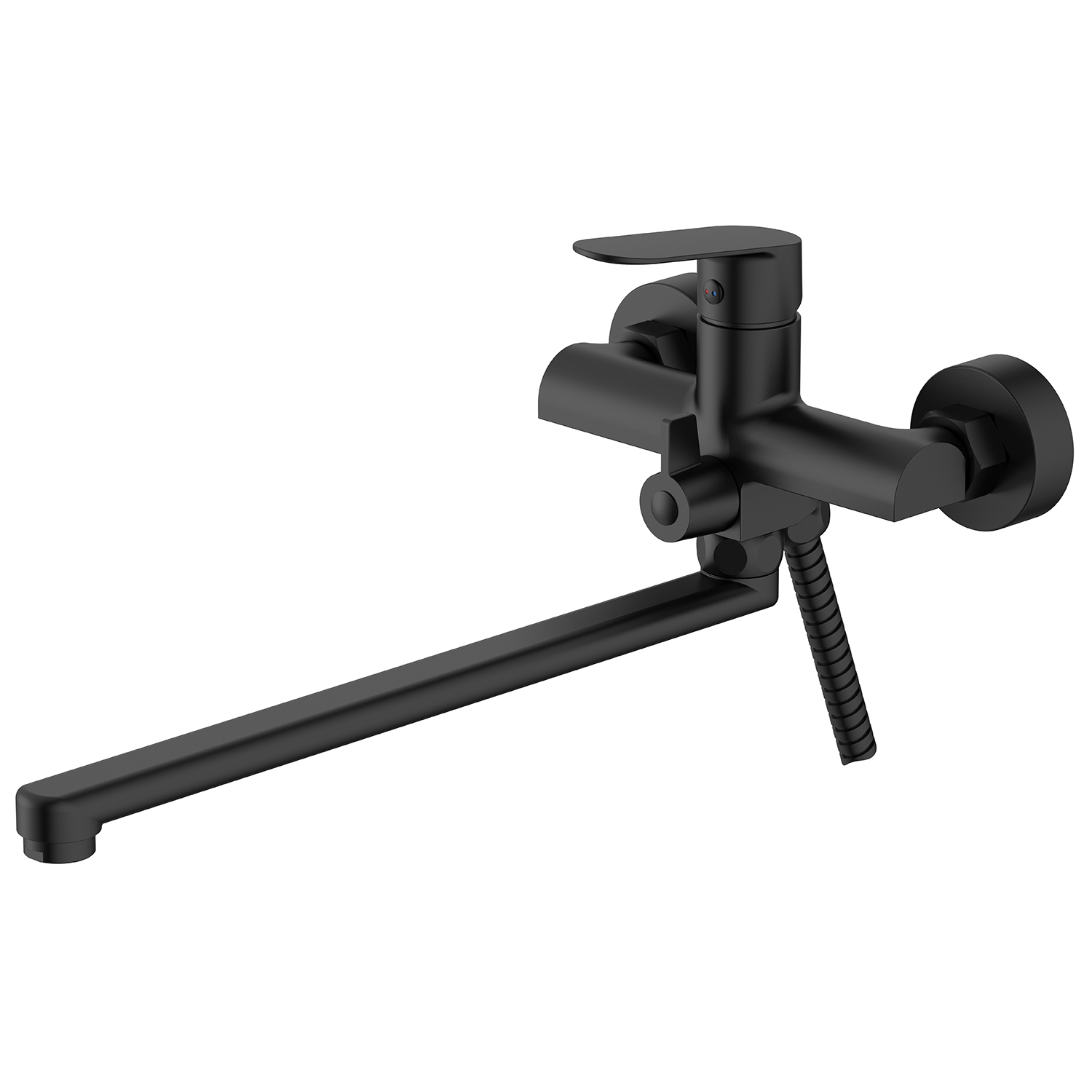 Смеситель для ванны Azario Alanti AZ-K1732B с душевым гарнитуром и длинным изливом, материал латунь, цвет чёрный матовый.