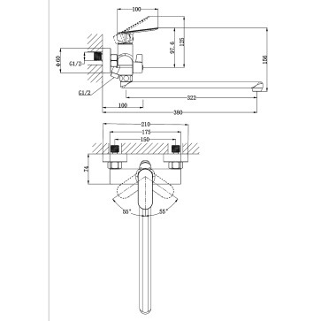 Характеристики смеситель для ванны с длинным изливом Azario (AZ-K1732MG)