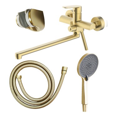 Смеситель для ванны Azario Alanti AZ-K1732MG с душевым гарнитуром и длинным изливом, материал латунь, цвет золото матовое.