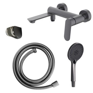 Смеситель для ванны Azario Alanti AZ-K3032GR, с душевым гарнитуром и поворотным изливом, материал - латунь, цвет - графит.