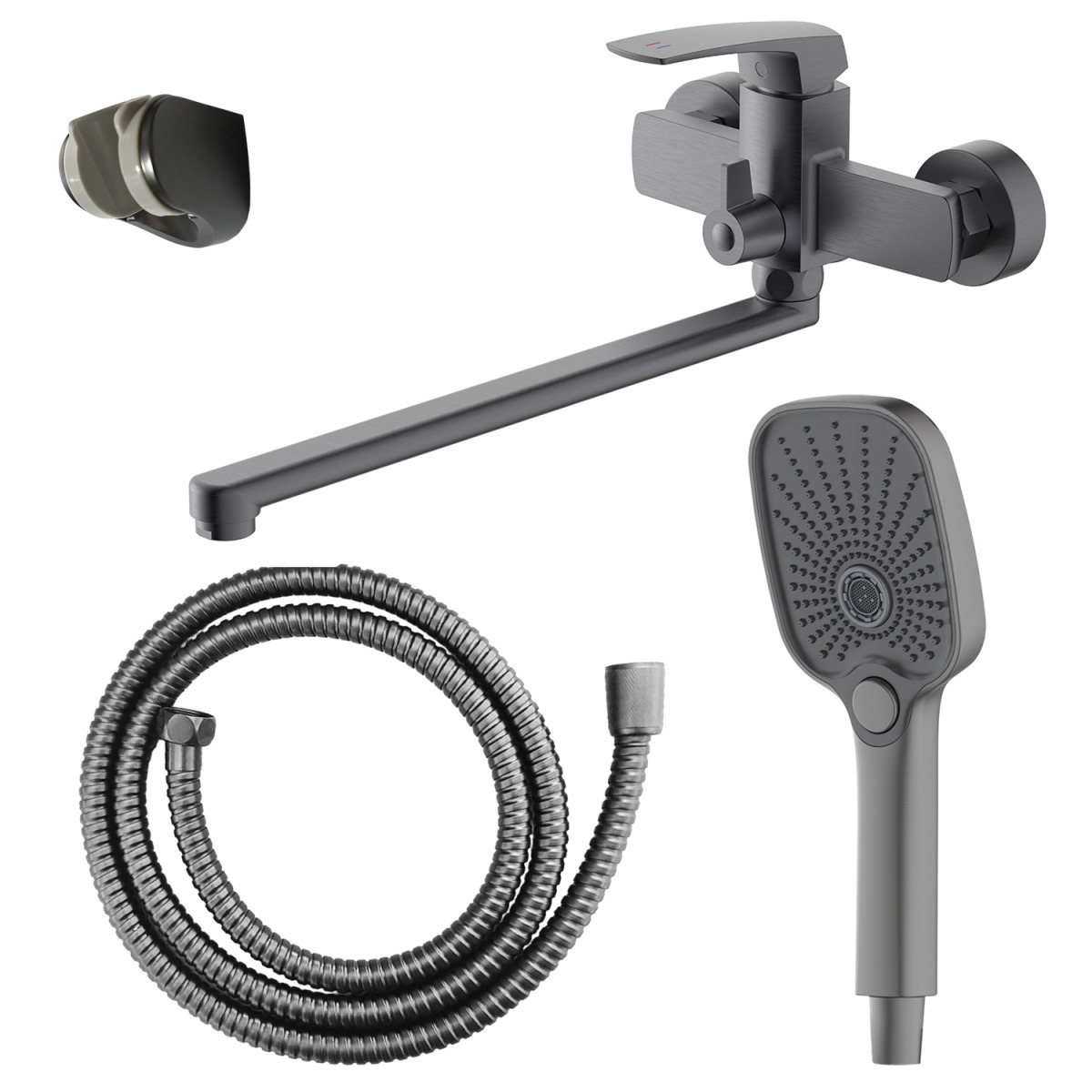 Смеситель для ванны Azario Conda AZ-K1711GR с душевым гарнитуром и длинным изливом, материал латунь, цвет графит.