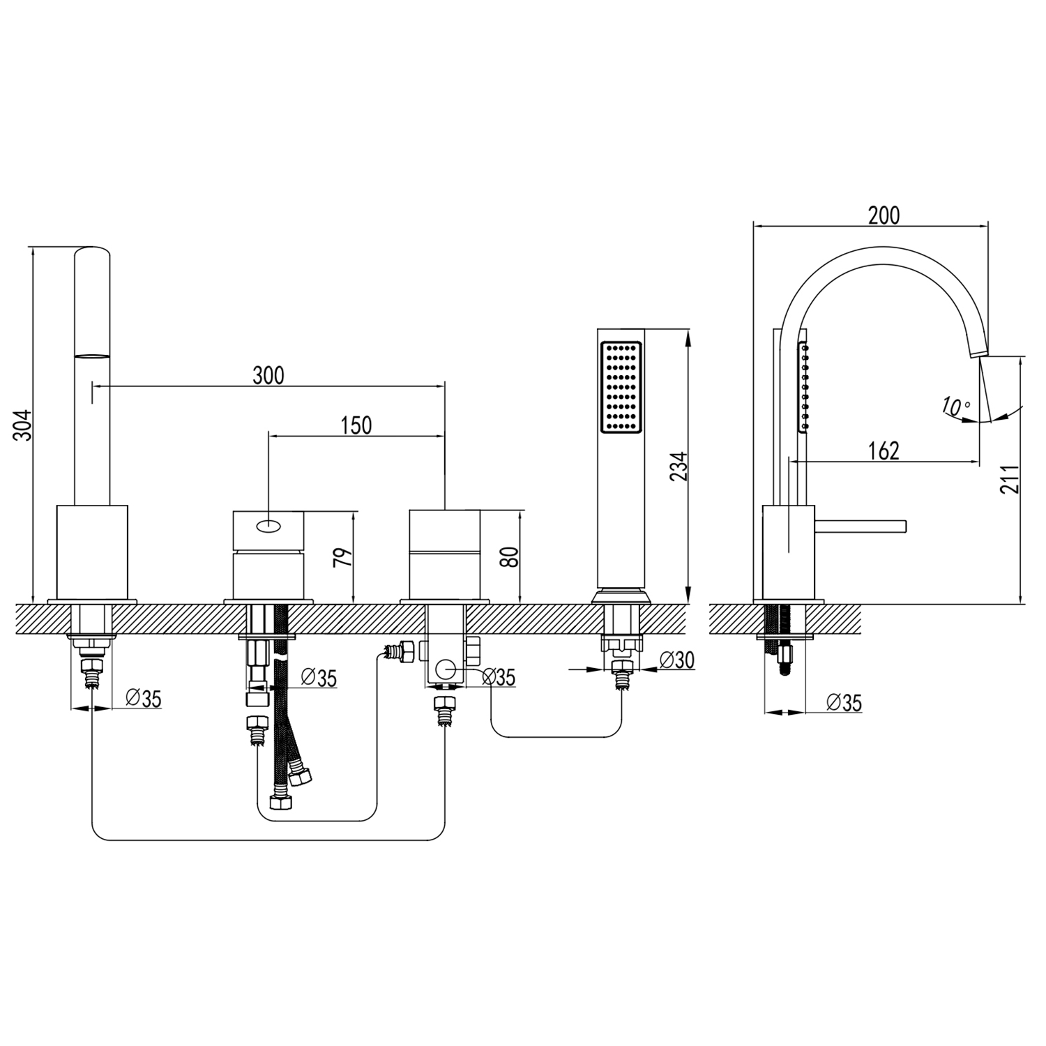 Характеристики смеситель на борт ванны Azario (AZ-QA28173PA-0307APA)