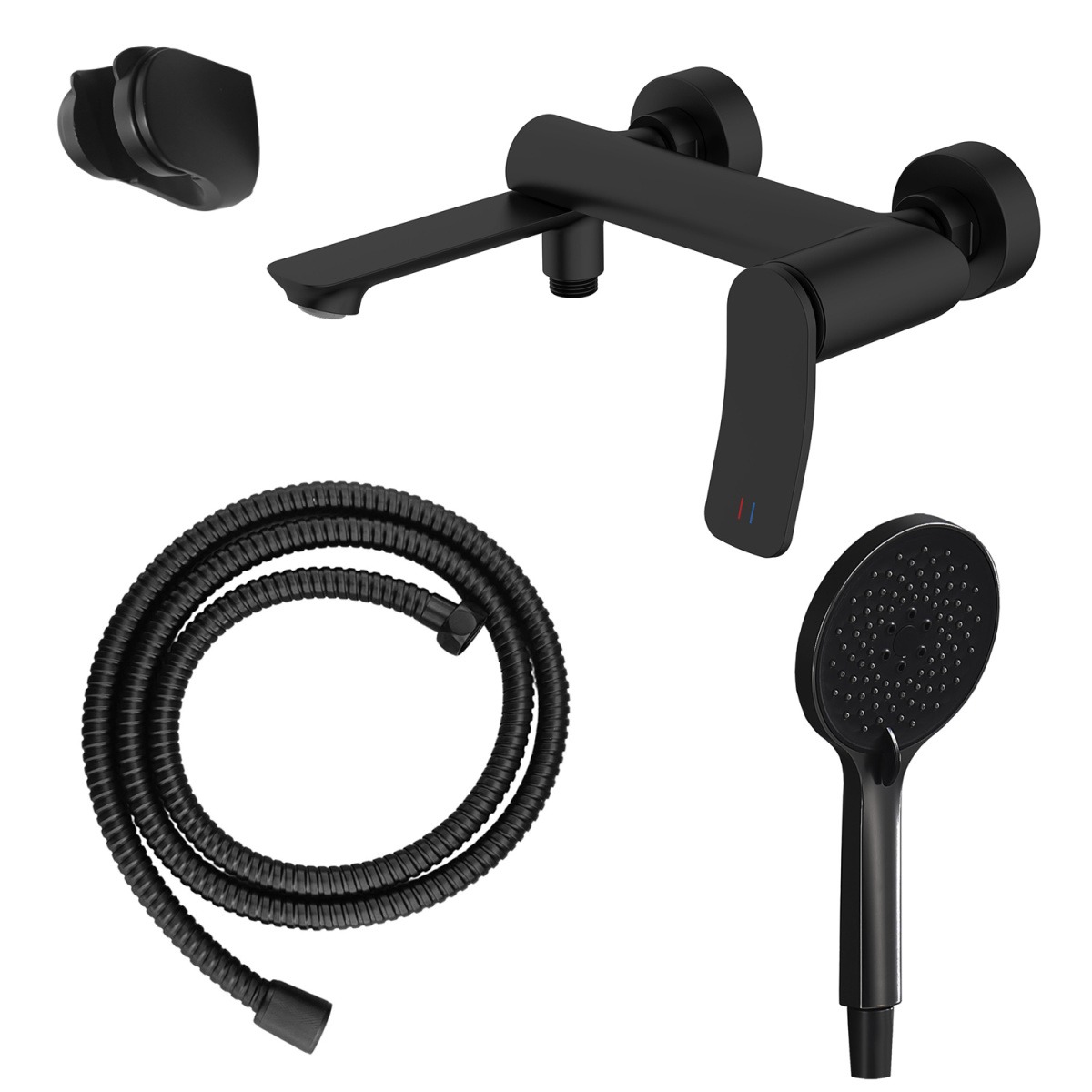 Смеситель для ванны Azario Escaro AZ-K3074B с душевым гарнитуром, материал латунь, цвет чёрный матовый.