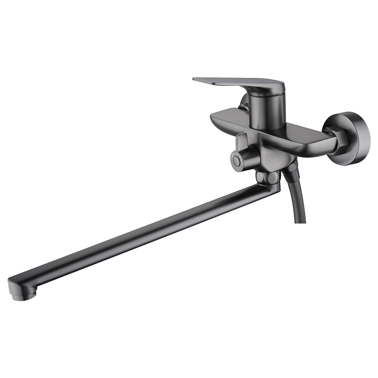 Смеситель для ванны Azario Lursy AZ-K1749GR с душевым гарнитуром и длинным изливом, материал латунь, цвет графит.