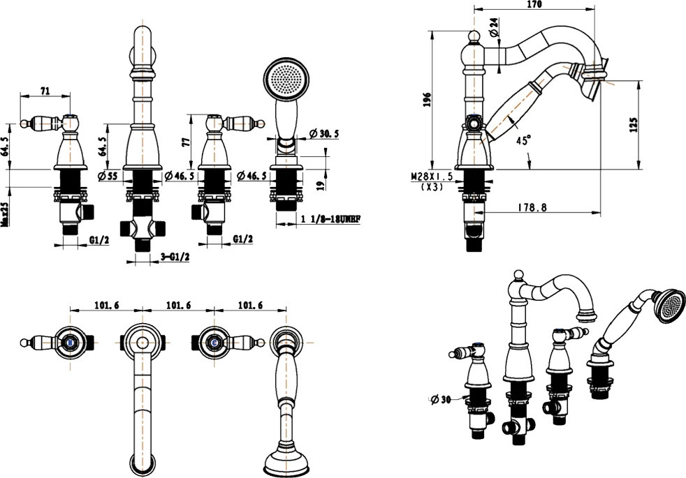 Характеристики смеситель на борт ванны Boheme (391-Camelia)