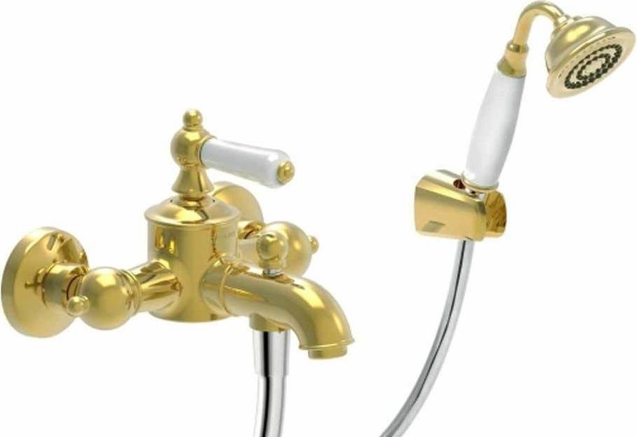 Смеситель для ванны Bravat Art, с ручным душем, материал - латунь, цвет - золото.