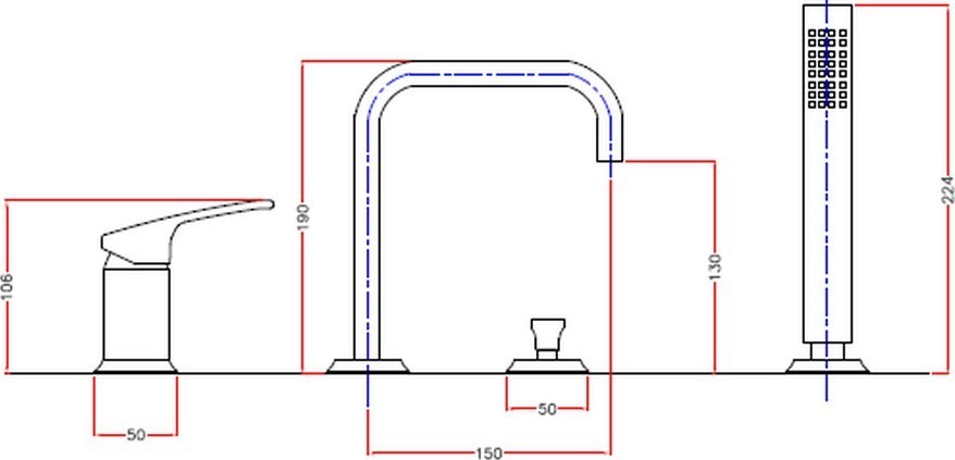 - Оснащение: душевой шланг, душевая лейка, крепления, аэратор, гибкая подводка, дивертор