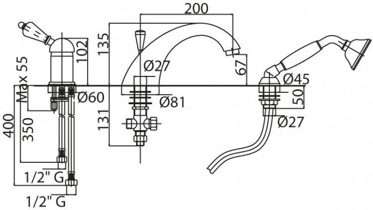 Характеристики смеситель на борт ванны Cezares (VINTAGE-BVDM-01-Sw)
