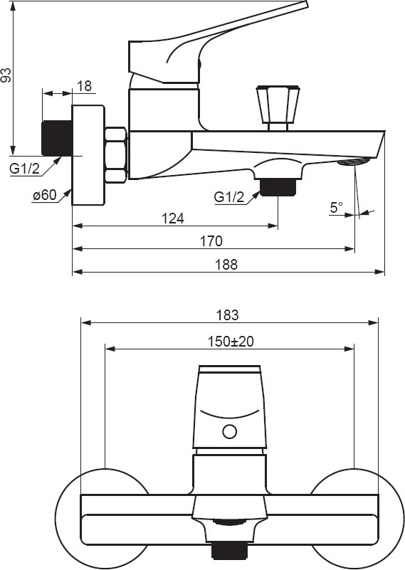 смеситель для ванны без гарнитура