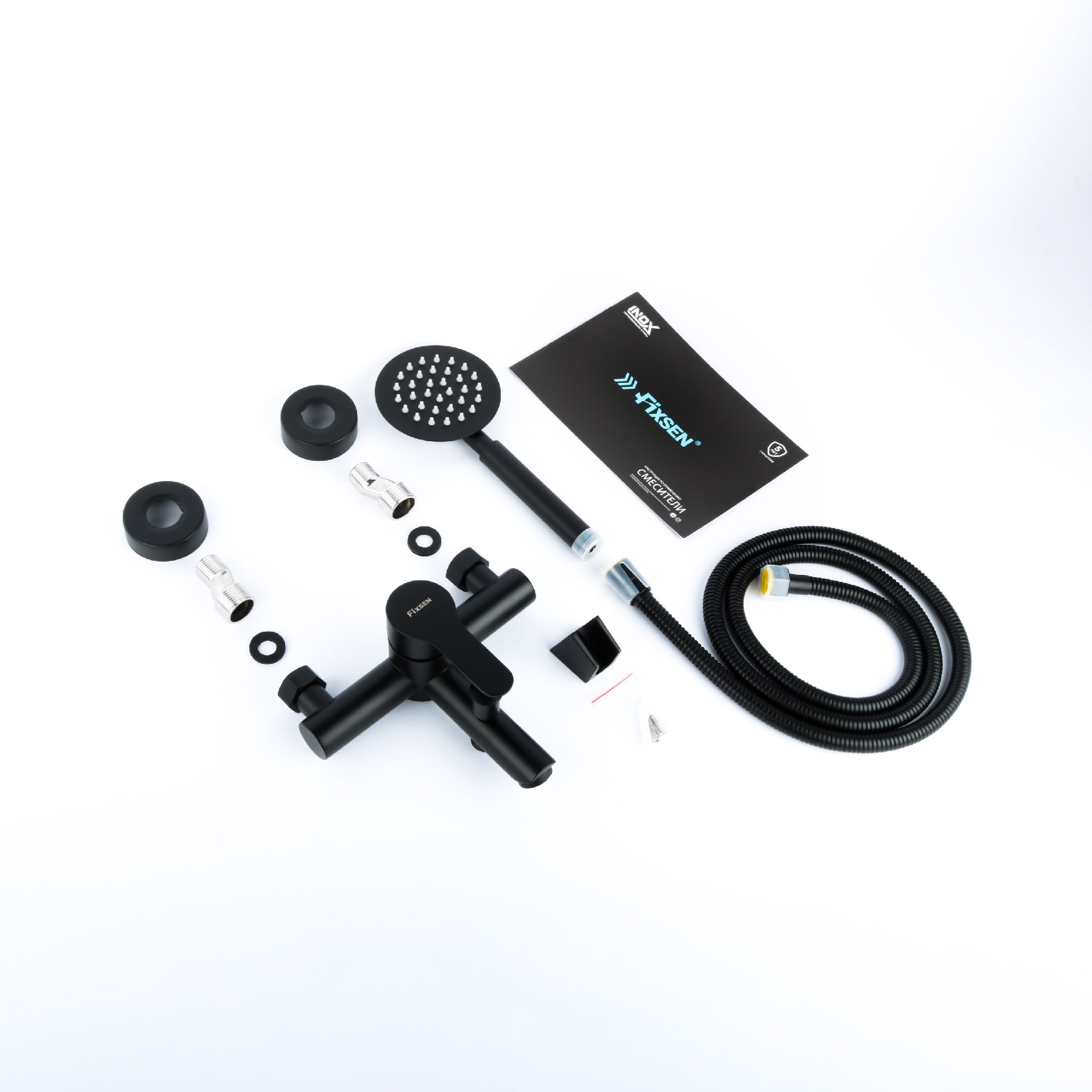 Смеситель для ванны Fixsen NORDIC FX-8803B с душевым гарнитуром, материал нержавеющая сталь, цвет чёрный.