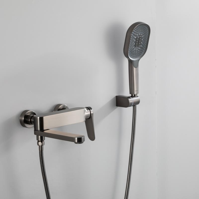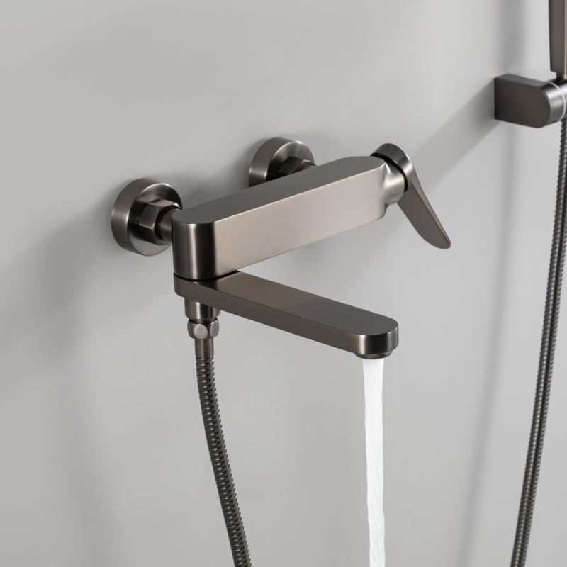 Смеситель для ванны с выдвижным изливом Gappo G10-9 G3210-9 с душевым гарнитуром, материал латунь, цвет оружейная сталь.