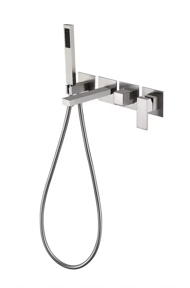 Смеситель для ванны Grocenberg GB5060NK с керамическим картриджем Kerox (Венгрия) и душевым гарнитуром, материал латунь, цвет никель.