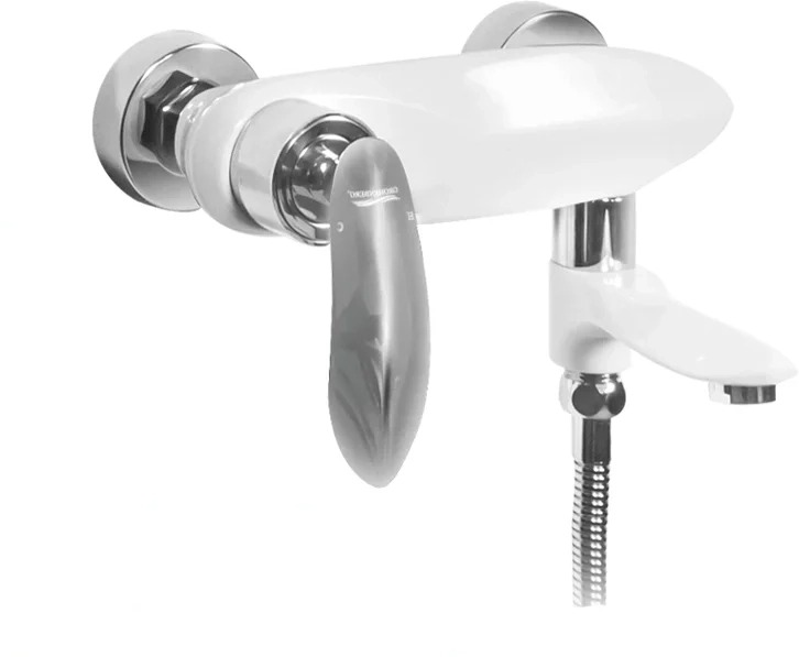 Смеситель для ванны Grocenberg GB8001WC с душевым гарнитуром, материал латунь, цвет белый хром.